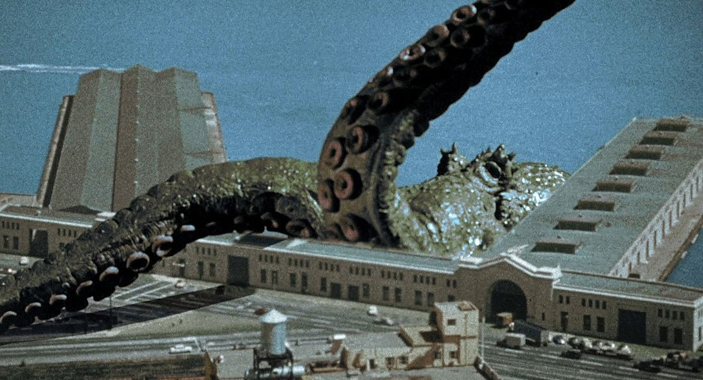 В 1950-х, годы трепета перед ядерной угрозой, соответствующими испытаниями все время кого-то будили, и морские чудовища не стали исключением. Так, в «Это прибыло со дна моря» (1955) от сна воспрял гигантский осьминог и атаковал Сан-Франциско. Хотя иногда осьминог — это просто осьминог, как в культовой «Невесте монстра» (1955), единственном коммерчески успешном фильме мастера «плохого кино» Эда Вуда. Как осьминожек там выглядит — это незабываемое резиновое нечто!